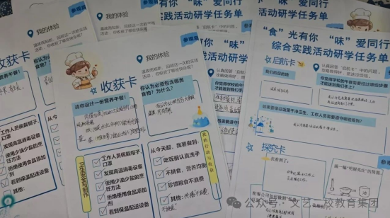 当孩子们亲眼见证土豆从泥泞到净菜的蜕变,那些曾被抗拒的蔬菜、被嫌弃的粗粮变成了香糯可口的午餐时,大家纷纷在研学任务单上写下答案与收获。